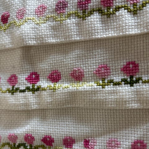 Pent sett med 4 vintage bordbrikker i bomull, trolig fra 1980-tallet.