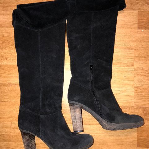 Høye vakre støvletter i ekte semsket skinn tilsalgs. Minimalt brukt. Ingen synlig slitasje eller skader. Nydelig mørk varm brunfarge. De er ikke så blasse som på bildene. Merket heter Wonders.