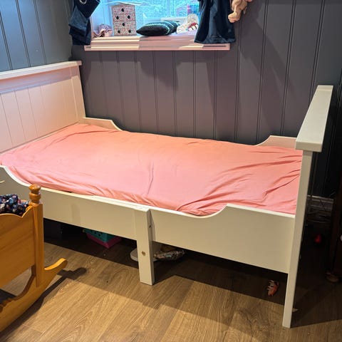IKEA Minnen uttrekkbar junior seng med metallramme.