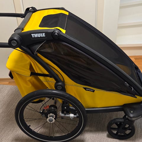 Annonse for å sjekke interessen for en sykkelvogn, som også kan brukes som barnepulk. Nypris er 17500,-