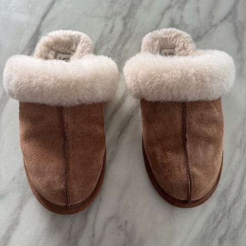 UGG tøfler størrelse 39. Tøflene har en beige farge og er i en ullblanding. De er kun brukt et par ganger, og sitter veldig godt på foten