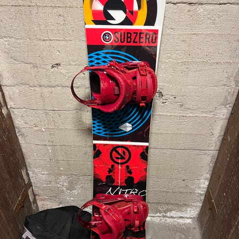 Nitro snowboard til salgs, 138cm. Bindinger medfølger. Brettet er 138cm langt, så det passer typisk best for personer 145-165cm. Kul, stilren design i beige med en robot som kan minne om Gundam, Robotech, Transformers e.l. Et kjekt snowboard fra en av verdens mest anerkjente produsenter av snowboard og snowboardutstyr. Se ellers bildene for detaljer.