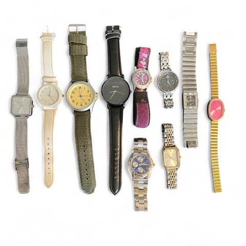 De fleste klokkene er kvarts, men det medfølger også en dameklokke med opptrekk. Ingen av klokkene går, men regner med at de fleste bare trenger batteribytte.
