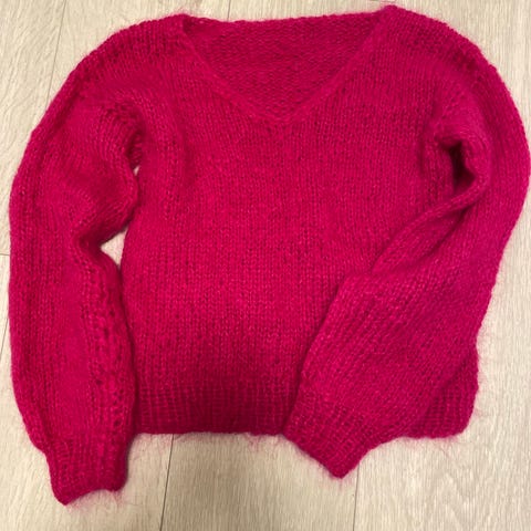 Ny! Selger en nydelig håndstrikket Cumulus-bluse i dobbel tråd tynn silk mohair.