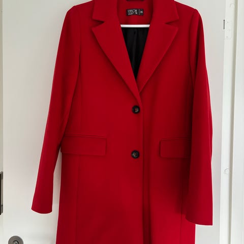 Kjempefin rød kåpe fra MbyM, ble dessverre bare hengende i skapet. Str S/M men oppleves større/oversized.