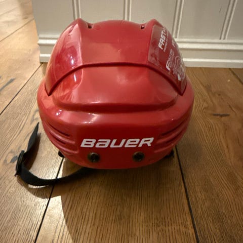 Bauer ishockeyhjelm med gitter, til bruk i ishockey. Hjelmen er utstyrt med beskyttende gitter foran for ansiktssikring.