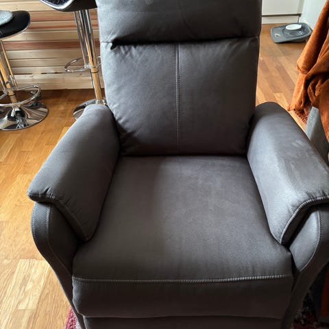 Varmesete, korsryggstøtte, motorisert fothviler og løft for å komme seg lettere opp fra stolen.
