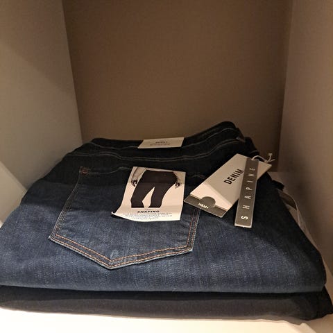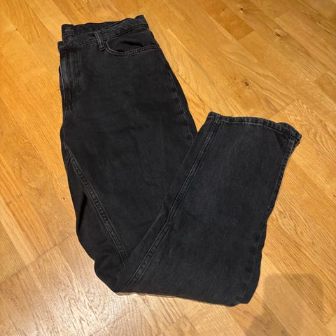 1 grå jeans, normal midje, utsvinget modell. Kjøpt hos Lager 157