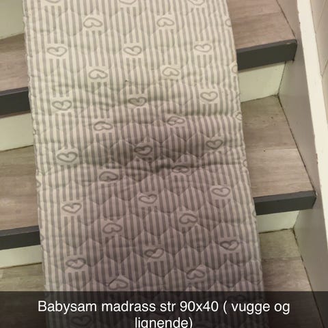 Madrass til å legge barnet på på gulvet i garderobe og dusj. Pent brukt oppblåsbar stellematte,lett å ta med å reise.