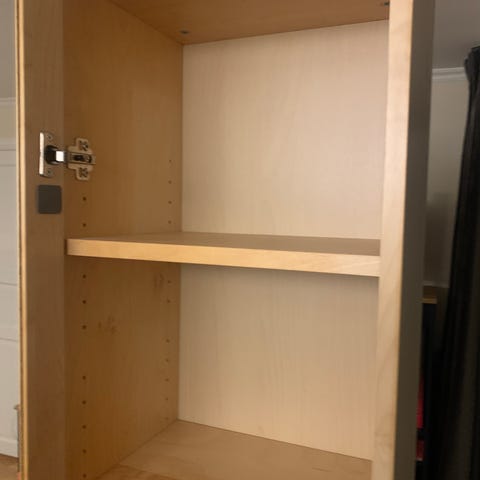 Selger TONSTAD skap fra IKEA med skyvedører i eikefiner. Har noen få skraper oppå benkeplaten, se bilde. Fargen ser noe oransje/ gul ut på bildene, men viser bedre fargen på de to siste bildene. Må hentes☺️