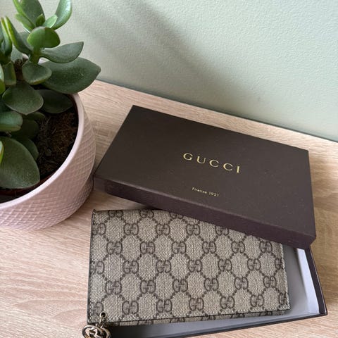 Louis Vuitton Dame lommebok i lær med glidelås. Lommeboken har flere rom for oppbevaring av kort, mynter og sedler. Mønster i klassisk sjakkdesign i brune toner. Leveres med original eske og oppbevaringspose.