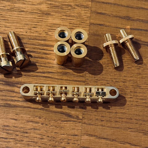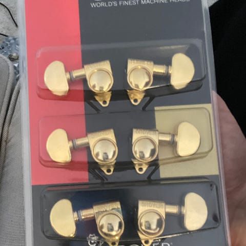 Selger et fullt sett med Epiphone Explorer-stemmeskruer i gull. Disse er 6-in-line og passer på modeller som Explorer, Firebird eller Stratocaster/Telecaster. Kommer med alt av bøssinger, skiver og monteringsskruer.