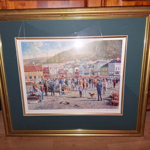 Fint signert bilde,skadet glass under transport,men ellers fint.