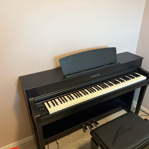 Yamaha Upright Piano med svart pianolakk. Fantasisk klaviatur for både nybegynnere og erfarne pianister, og selges fordi jeg også har et akustisk piano jeg som regel bruker.