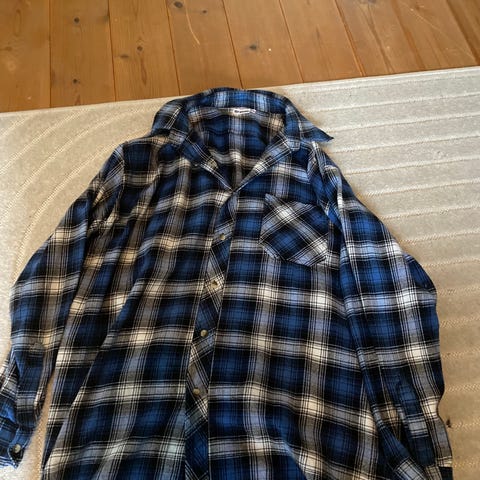 - **Tilstand:** Brukt, men pen og solid! Normal rynker/falming i fargene (typisk for bomull/flanell etter vask/bruk), ingen hull, rifter, flekker eller defekte knapper. Ren, uten vond lukt – har vært vasket. Klar til ny eier!