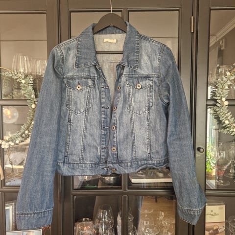 Rosa denim/olajakke i str 34