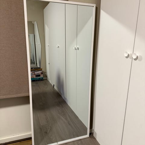 Jysk speil i rektangulær form med ramme i hvit trefarge. Egnet for montering på vegg og bruk i ulike rom som gang, soverom eller stue. Størrelse 150x68