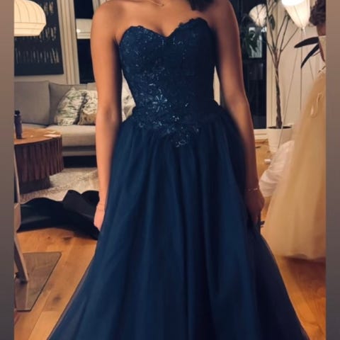 Nydelig ballkjole. Stoffet er sikkert blanding av "silke/brokade" rykt stoff som gjør at den er stiv og vil da holde seg godt på kroppen.