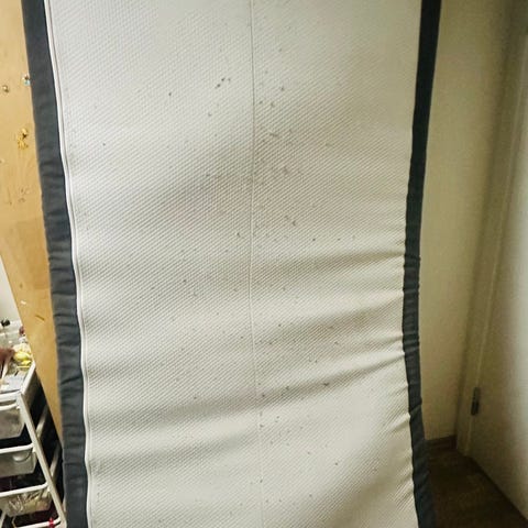 Jysk madrass, en av de bedre utgavene - form skum aktig. Skal være Medium. Var tiltenkt utleiedel. Ligger på ramme fra IKEA. 140cm bredde. Gis bort mot nedbæring og henting. Hentes sentralt i Oslo.