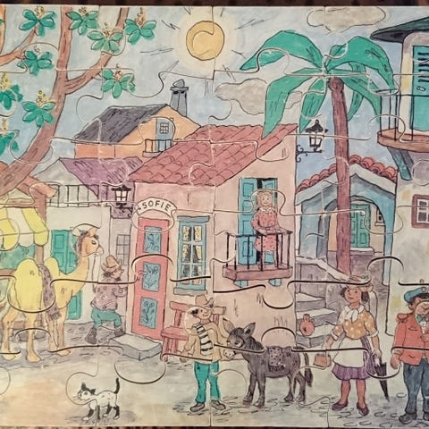 Rund blink med borrelås og søte figurer som fester seg når du kaster de på🙂