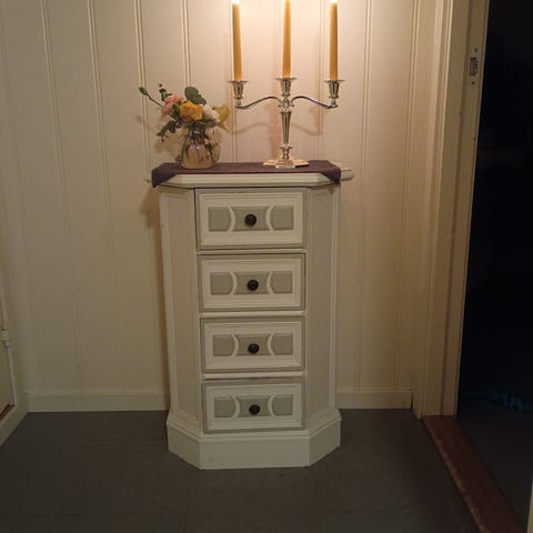 Kommoden har et ovalt speil og inkluderer flere så og store skuffer for oppbevaring. Ideell for soverom eller garderobeområder, gir det et klassisk preg til interiøret. Helt i orden. Må hentes i Fredrikstad.