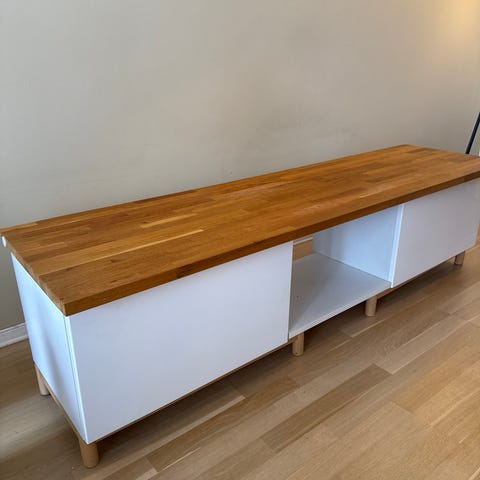 Pent brukt kjøkkenbenk med god sittekomfort og 4 praktiske skuffer med god oppbevaringsplass.
