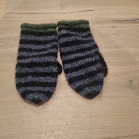 Svært pent brukte ullvotter med mønster i svart og hvitt. Passer til dame med handskestørrelse 7.