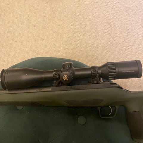 Meopta MeoPro Optika6 kikkertsikte med forstørrelse 5-30x og objektivdiameter på 56 mm. Modell med rødpunkt (RD) og første fokusplan (FFP).