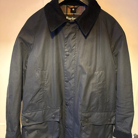 Klassisk Barbour-jakke i tidløs olivengrønn farge. Pent brukt og godt ivaretatt, med normal passform i størrelse M. Perfekt til både hverdag og mer pyntede anledninger