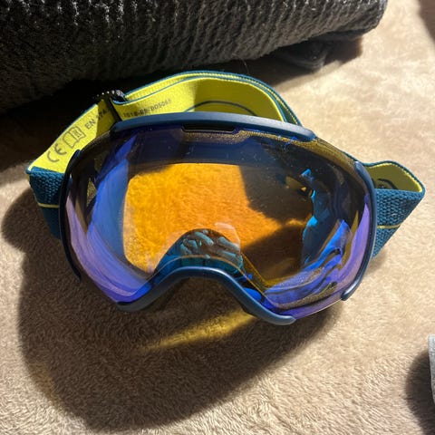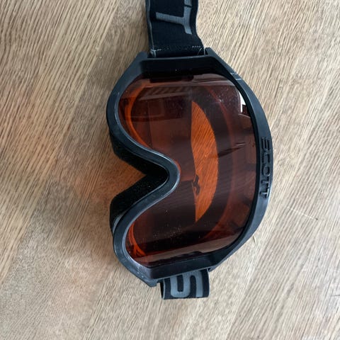 Scott skibriller med oransje linser og svart ramme. Brillene har justerbar stropp med Scott-logo. Alpinbriller til barn.