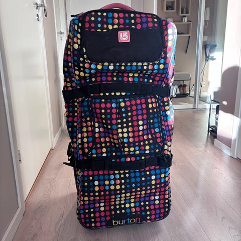 Flott reisebag fra Burton med hjul for enklere frakt. Uttrekkbar håndtak for lettere styring. Mange ulike rom i baggen som er praktisk. Solid plast i bunn av bag som gjør den robust.