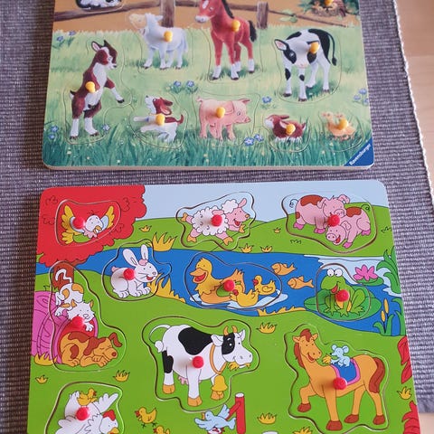 Her er det to puslespill med knotter for de minste. Begge er laget i tre.
