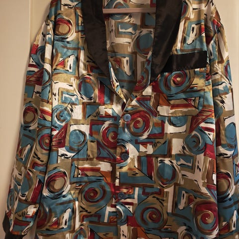 Jeg selger en vintage «røykejakke», pent brukt. Nydelig farge, kan også brukes som dressjakke. Unisex, str L / XL. Prisen er satt. Kan sendes mot porto. Se også mine andre annonser.
