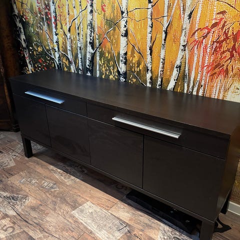 Selger en en IKEA Bjursta skjenk. Denne modellen er ikke lenger i produksjon, men den var en del av den populære Bjursta-serien fra IKEA, som inkluderte spisebord og vitrineskap.