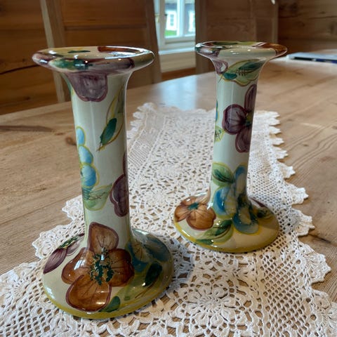 2 Håndmalte Te lysestaker