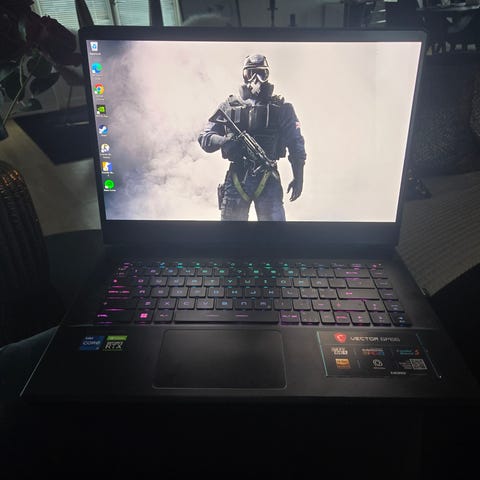 Selger en pent brukt MSI gaming PC.