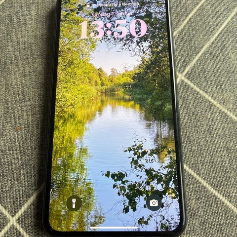Apple iPhone 11 pro max mobiltelefon. Enheten har en skjerm med skader og et bakdeksel i farge grå. Mobilen er egnet for bruk med passende mobiloperatør og tilbehør.