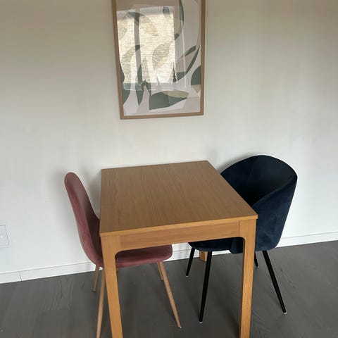 Noen kosmetiske små riper i bordplaten, men ellers helt og fint.