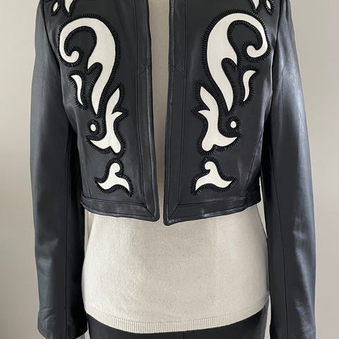 Helt strøken bomberjakke i imitert skinn med brede skuldre. Størrelse 36, men oversized!