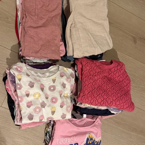 Stor klespakke til jente str 122-128 ,sko str 29- 30 Bruksmerker forekommer på noen av klærne.