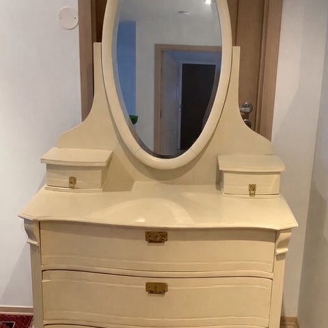 Kommode med seks skuffer. Pent stand, men kan forekomme noe vannmerker inni skuffene