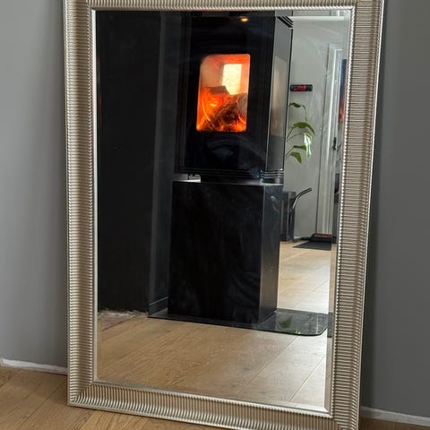 IKEA speil med malt svart ramme. Rektangulær fasong som egner seg godt som helfigurspeil i gang, soverom eller andre rom. Rammen har en enkel, profilert utforming i mørk farge. Kan monteres på vegg etter behov, oppheng følger eventuelt med etter originalt oppsett fra produsent.