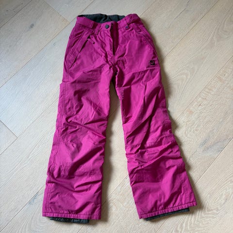 Selger en super fin teknisk bukse fra O'neill til jente i str 164. Dette er en allværsbukse i softshell. Buksen har en super justering i livet. Og glidelås på front lommer. Vind og vanntett. Samtidig puster den veldig bra. Lilla fargen kan se blass ut på bilder. Noe den absolutt ikke er. Kan sendes