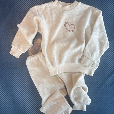 Nøstebarn ull pysjamas / hel dress i størrelse 110/116. Ull og silkeblanding. Veldig lite og pent brukt.