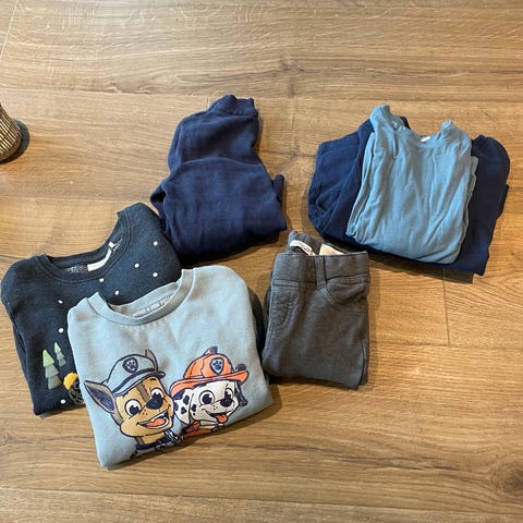 Selger pent brukt hettegensere med Pokémon og Paw patrol logo, samt en Paw patrol t-skjorte.