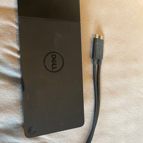 Dell WD19DC dokkingstasjon for bærbar PC. Enheten har flere tilkoblingsmuligheter for skjerm, nettverk og USB-enheter via én kabel til PC. Passer til kompatible Dell-bærbare PC-er som støtter denne typen dokkingløsning. Farge: svart.