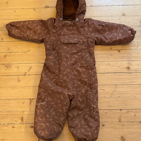 Pent og lite brukt utedress i myk softshell fra Wheat i str 86. Romslig i str. Nydelig blomstermønster. Litt misfarging bak, se bilde,har ikke prøvd sitronsåpe, så går mest sansylig vekk med dette.