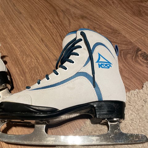 Kosa Dancing skøyter i størrelse 40. Klassiske hvite skøyter med snøring og fastmontert skøytestål. Egnet til generell bruk på is, som tur- eller danseskøyter. Overdel i syntetisk materiale med polstret innside for bedre komfort rundt ankel. Såle og hæl i solid materiale med metallskinne under.