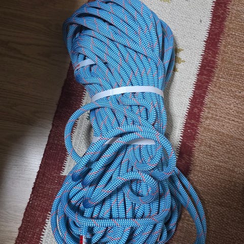 Selger et sett med Mammut Phoenix 8.0 Dry klatretau (60 meter). Dette er lette og allsidige tau som er sertifisert som både halvtau og tvillingtau, noe som gjør dem ideelle for lange ruter i fjellet, isklatring eller trad-klatring.