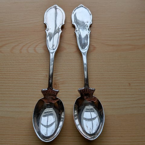 De er i 60 grams sølv og merket med stedsnavn, Vik i Sogn og Ytterøy.
